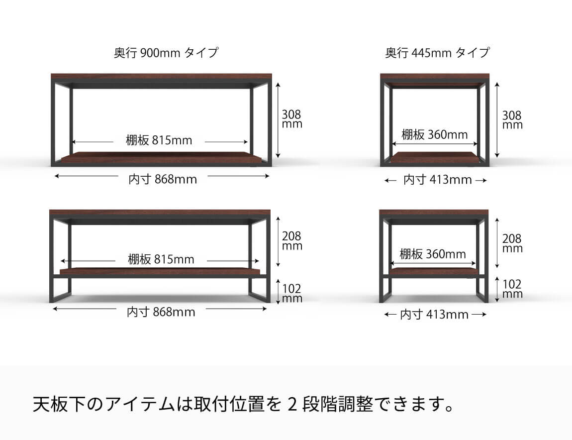 棚板は取り付け位置を2段階調節できるので、テーブルの上を広々と使うことができます。