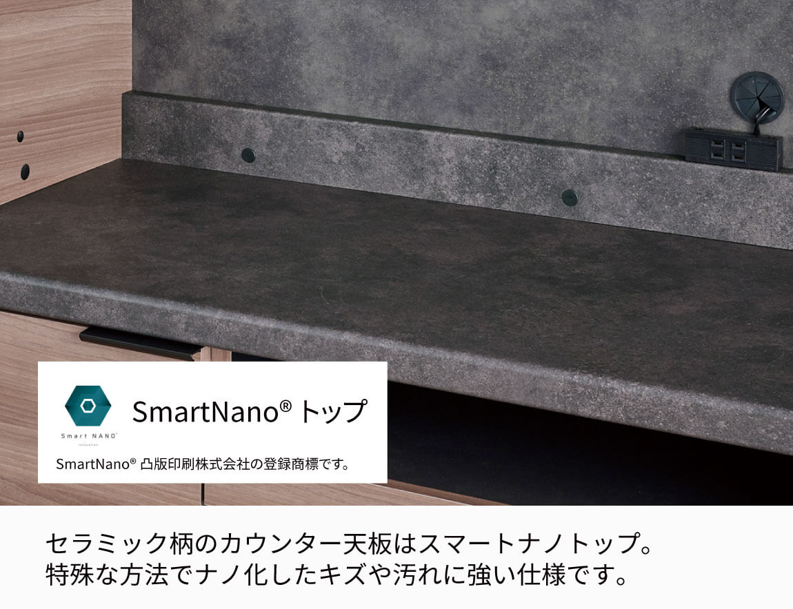 カウンター天板はナノレベルで強化されたコートが施されていますので、スリ傷に強い仕様になっています。