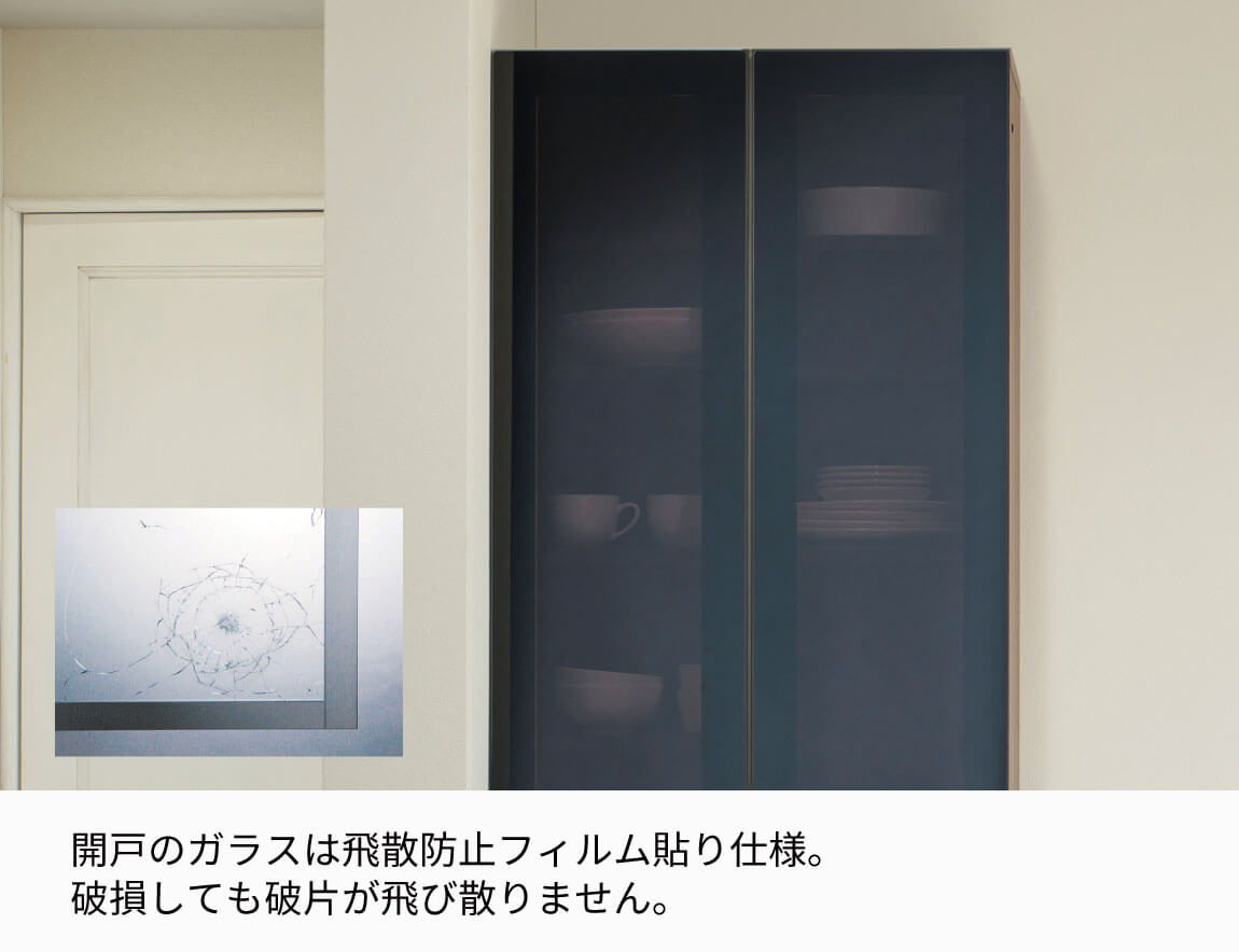 ガラスには飛散防止フィルムを貼っており、破損しても破片が飛び散りません。