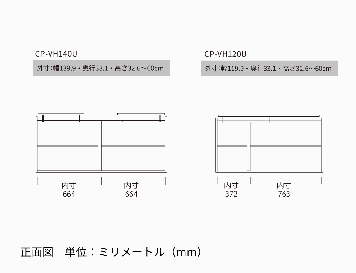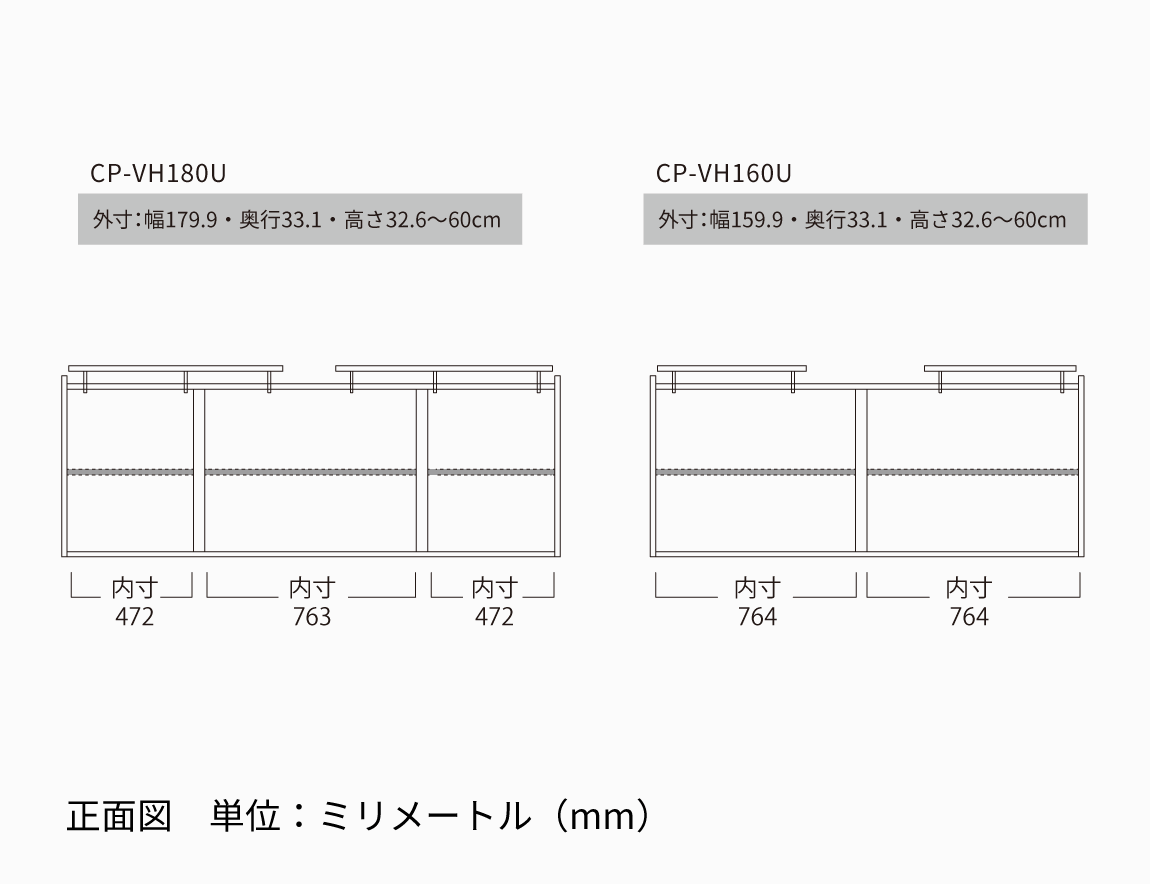 例)cpvh180ubs :450mm、cpvh140umhb:500mm