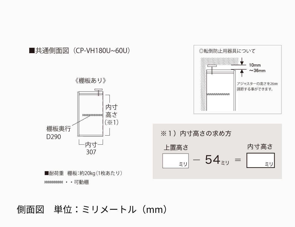 収納内部:約10kg(1箇所あたり)