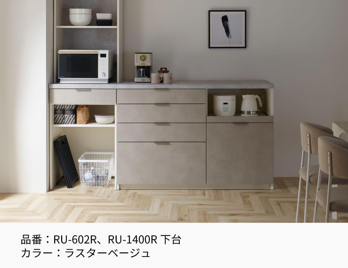 優れたデザイン性と必要な機能を備えたハイカウンタータイプの食器棚です。