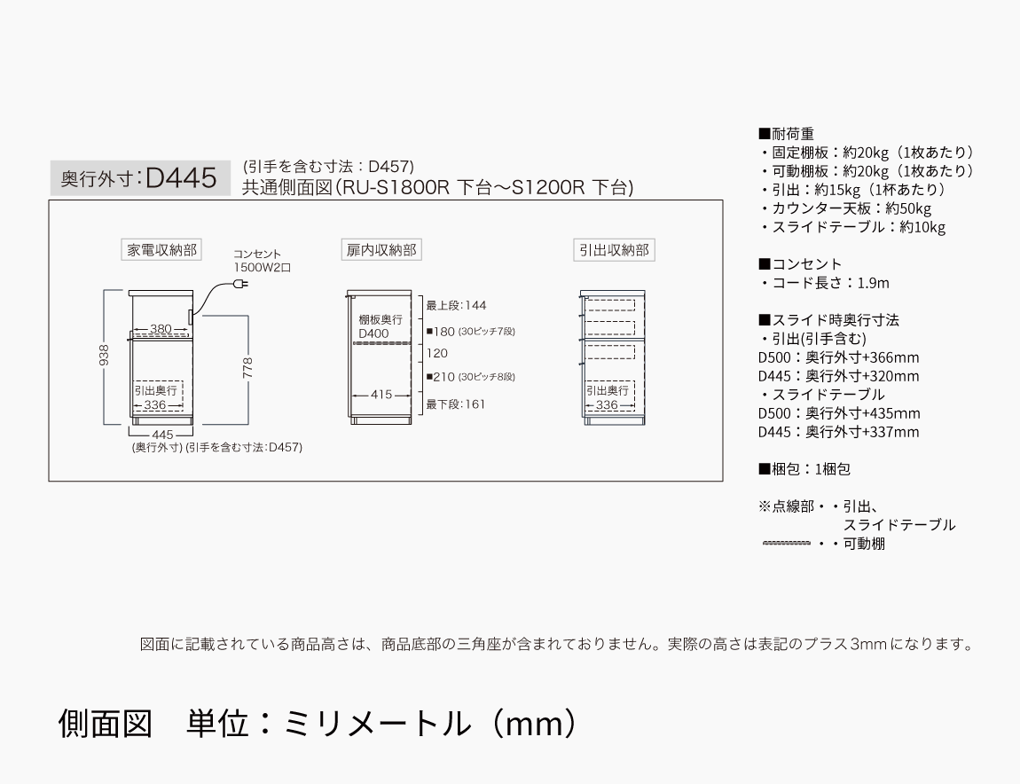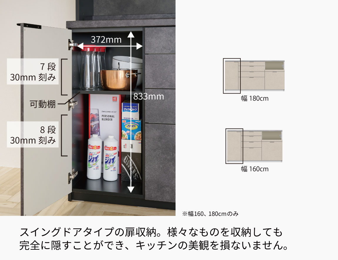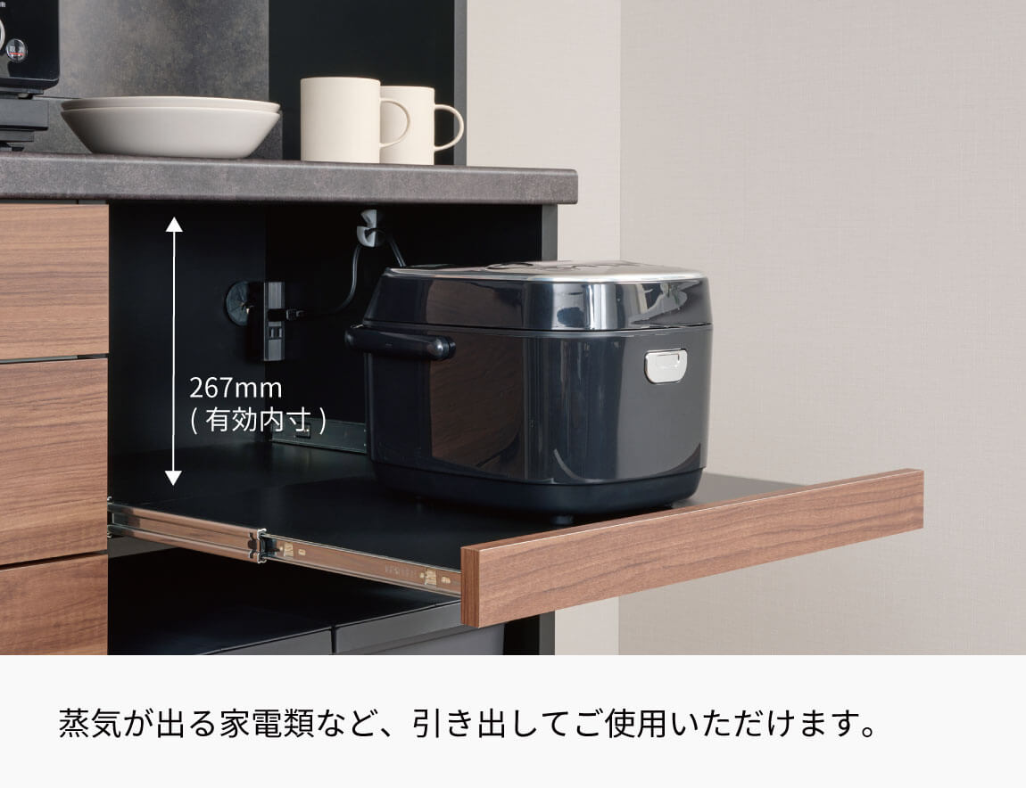 スライドテーブルになっているので、炊飯器などの蒸気の出る家電類を使いやすいところまで引き出してご使用いただけます。