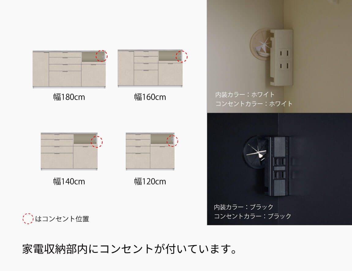 収納内部側面にはコンセントフックも付いていますので、コード配線が邪魔になりません。