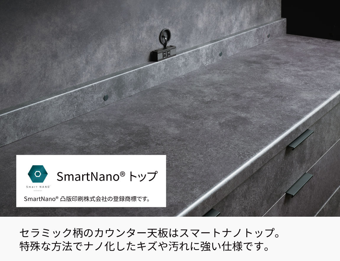 前面:オレフィンシート(シルキーナット、ラスターベージュ、ウォールナット)、Smart NANO®トップ(セラミカネロ)