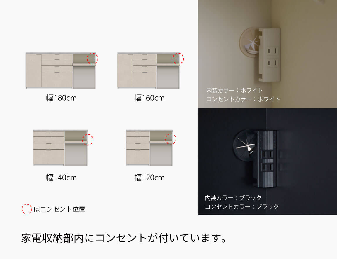 収納内部側面にはコンセントフックも付いていますので、コード配線が邪魔になりません。