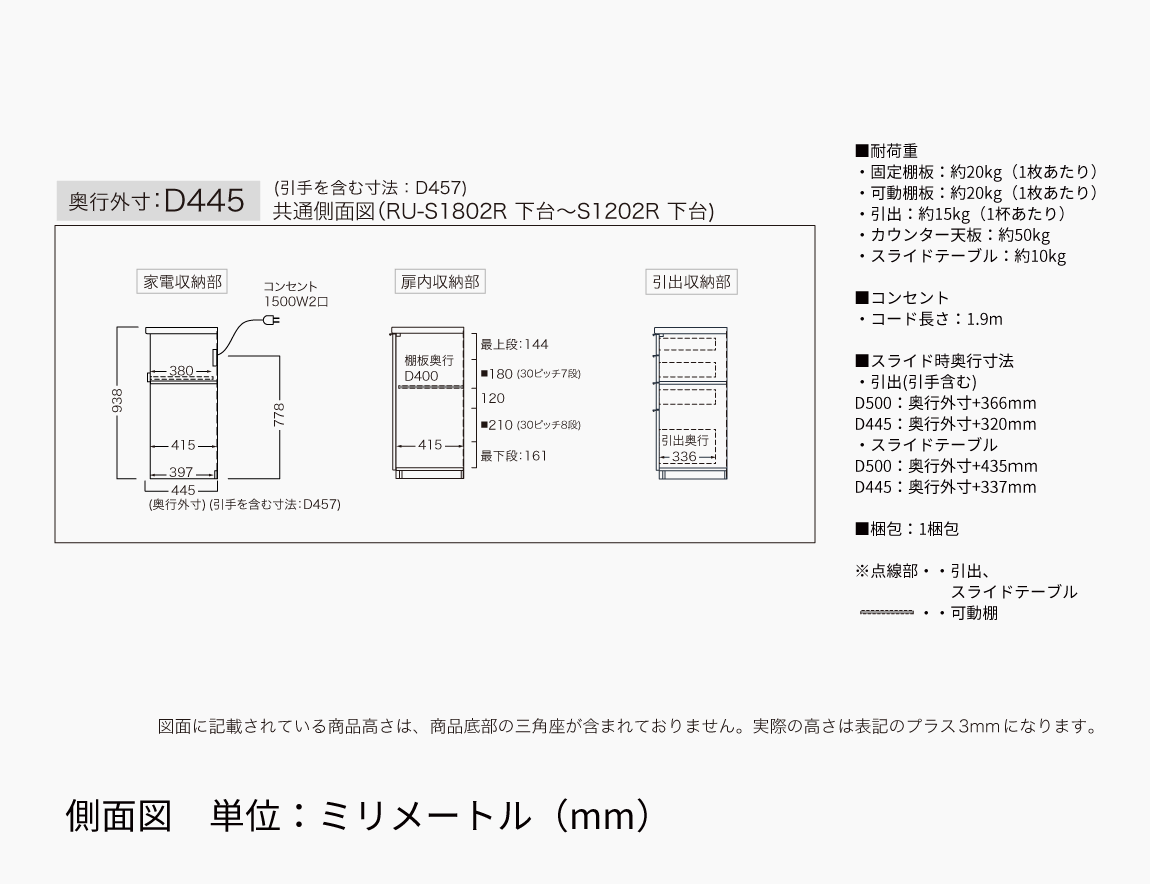 スライドテーブルになっているので、炊飯器などの蒸気の出る家電類を使いやすいところまで引き出してご使用いただけます。