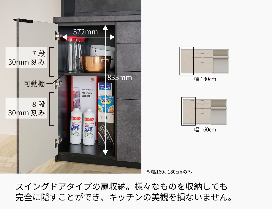 多機能なサイドアイテムと組み合わせることで、キッチンでの収納量や作業効率をよりアップさせることができます。