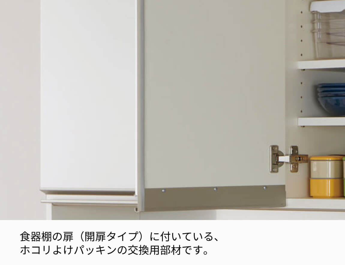 ・開扉タイプ食器棚の扉裏に付いているホコリよけパッキン交換用部材です。経年劣化でパッキンが破損した場合にご使用ください。