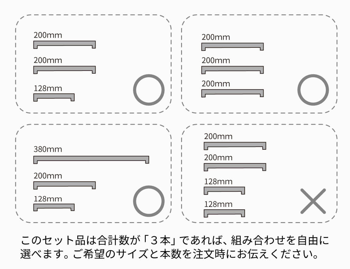 ・このセット品は、合計本数「3本」であれば異なる長さのハンドルを組合せて注文することが可能です。注文時にご希望のサイズと本数をお伝えください。