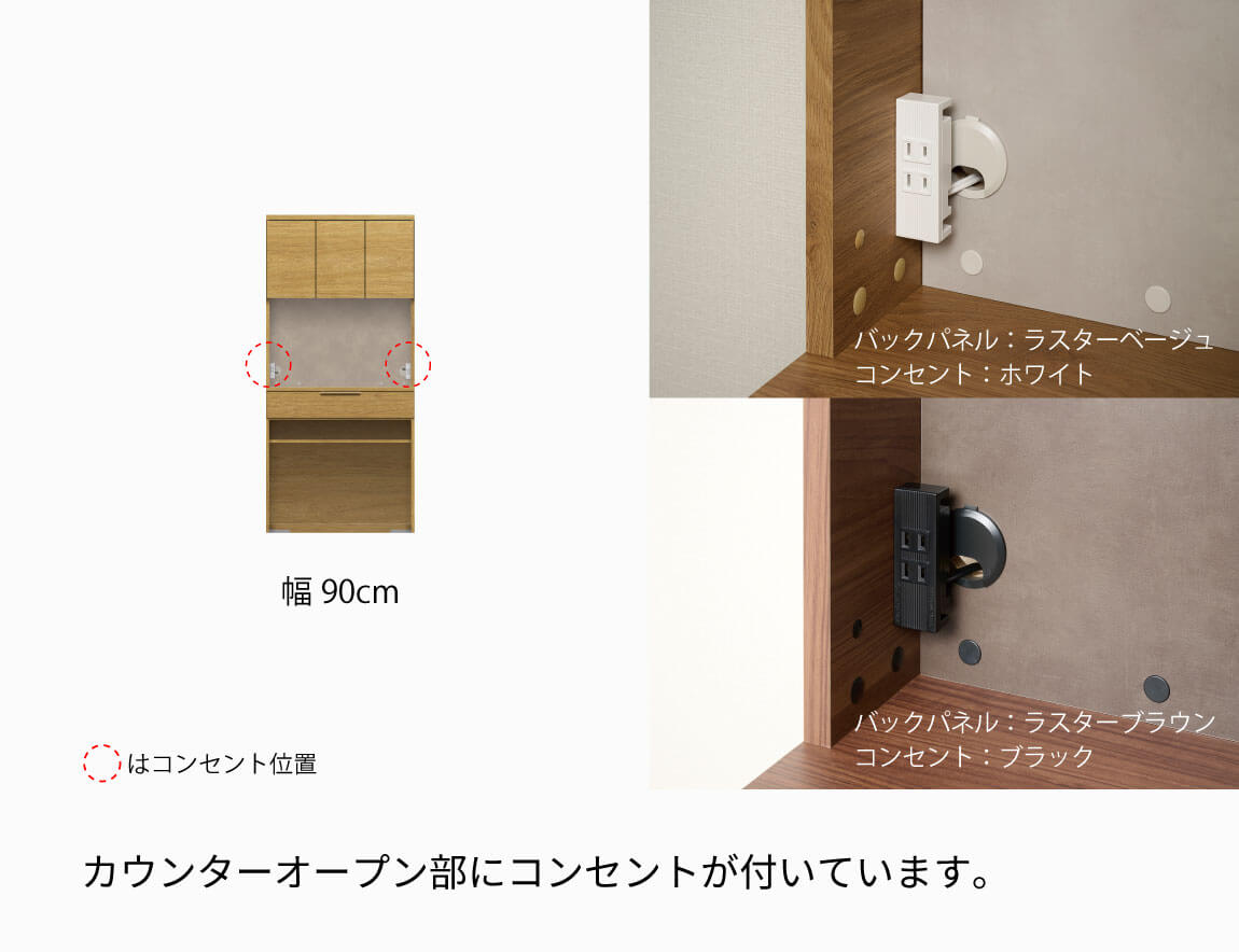 カウンターオープン部の両端に1500W2口のコンセントが設置されています。