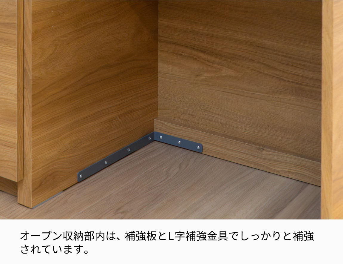 収納部内は、補強板とL字金具でしっかりと補強されています。