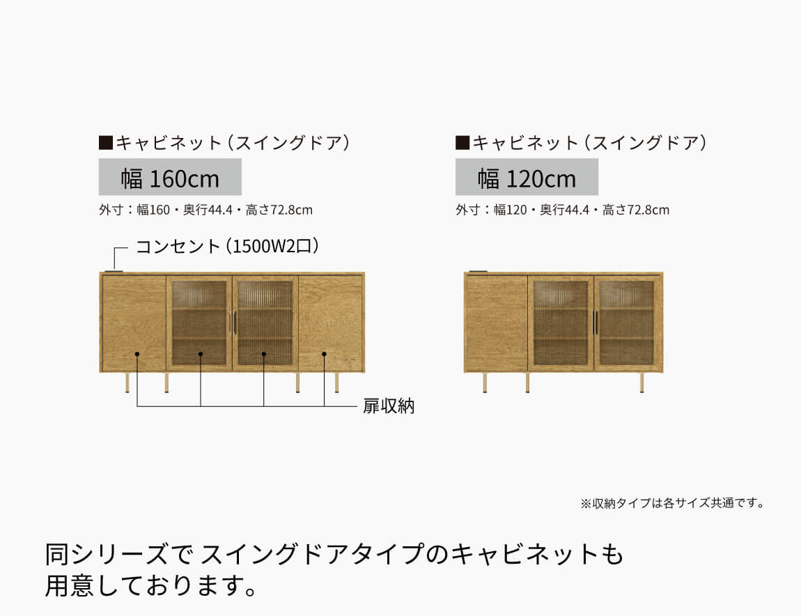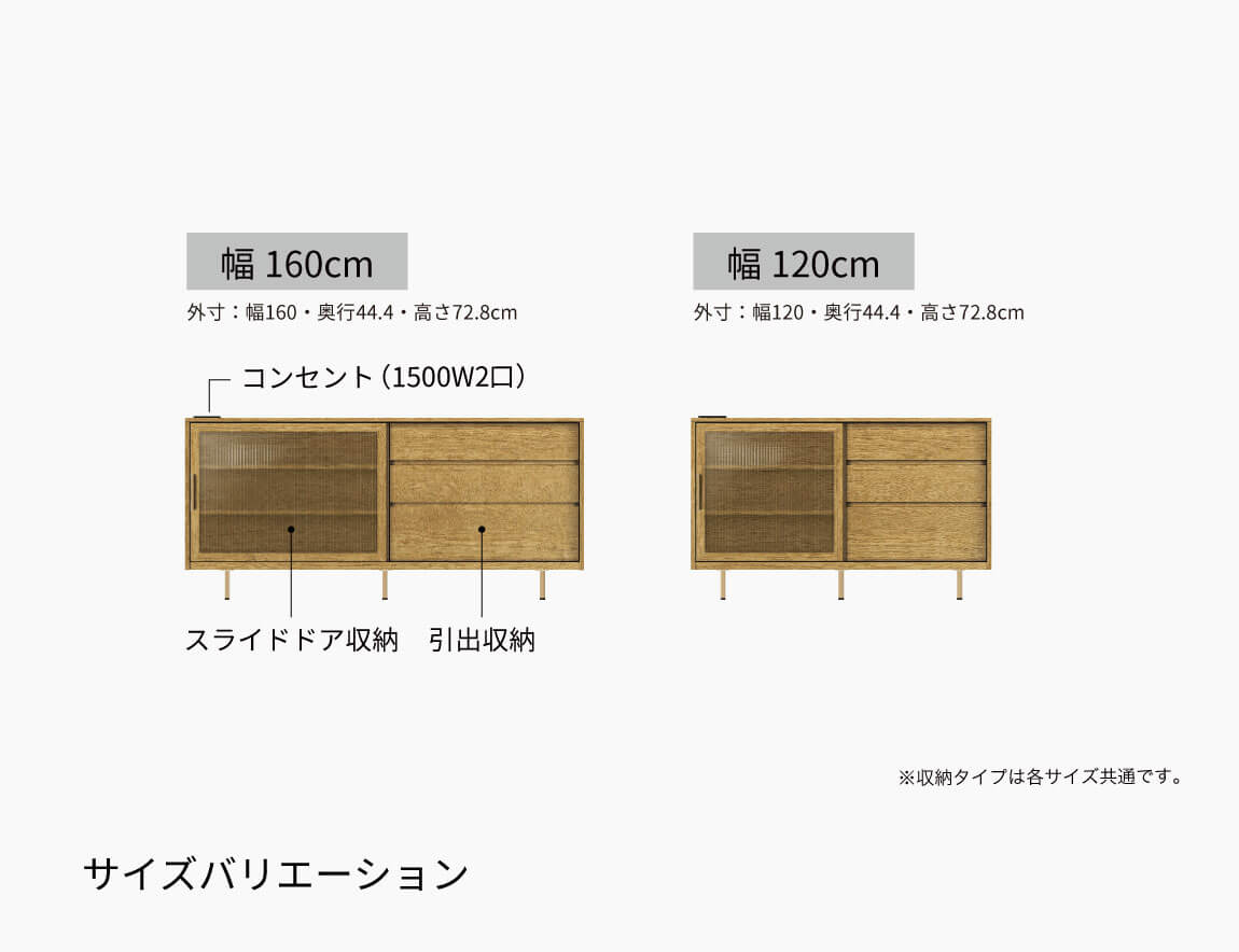 シンプルながらも丁寧に選ばれた色柄で、リビングはもちろんどんなお部屋にも馴染み、永く愛用できるサイドボードとしてお使いいただけます。