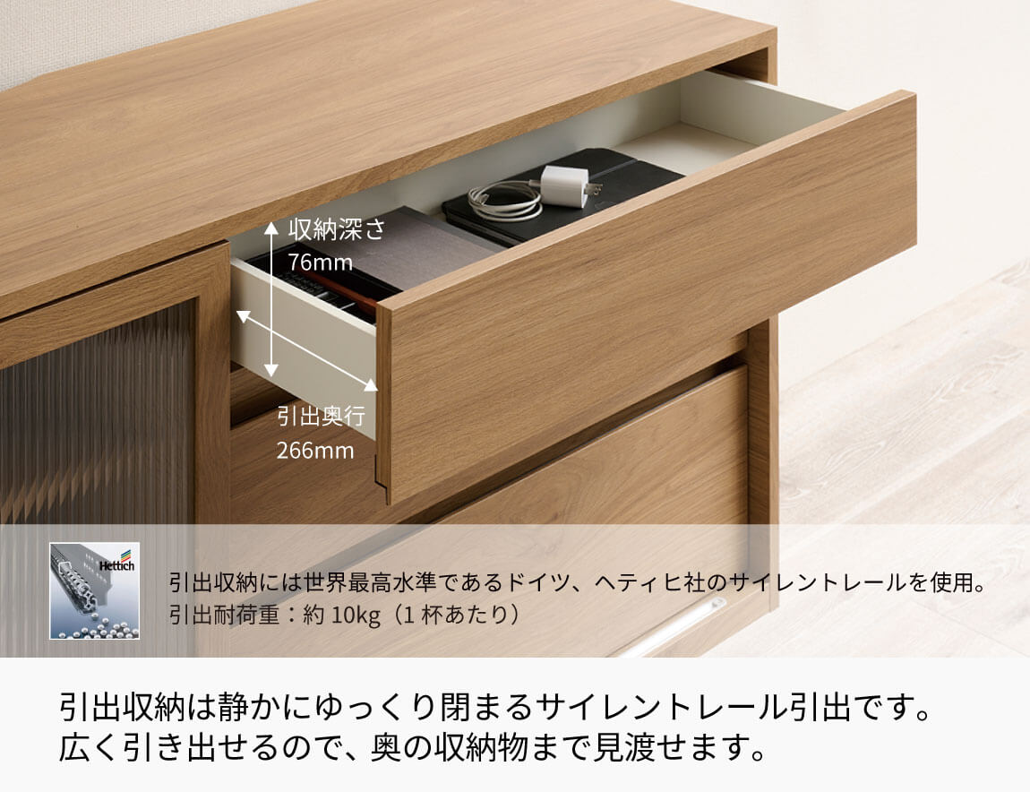 静かにゆっくり閉まるサイレントレールを採用しています。