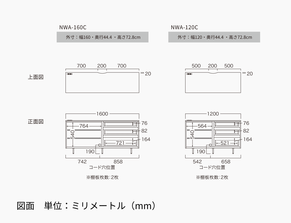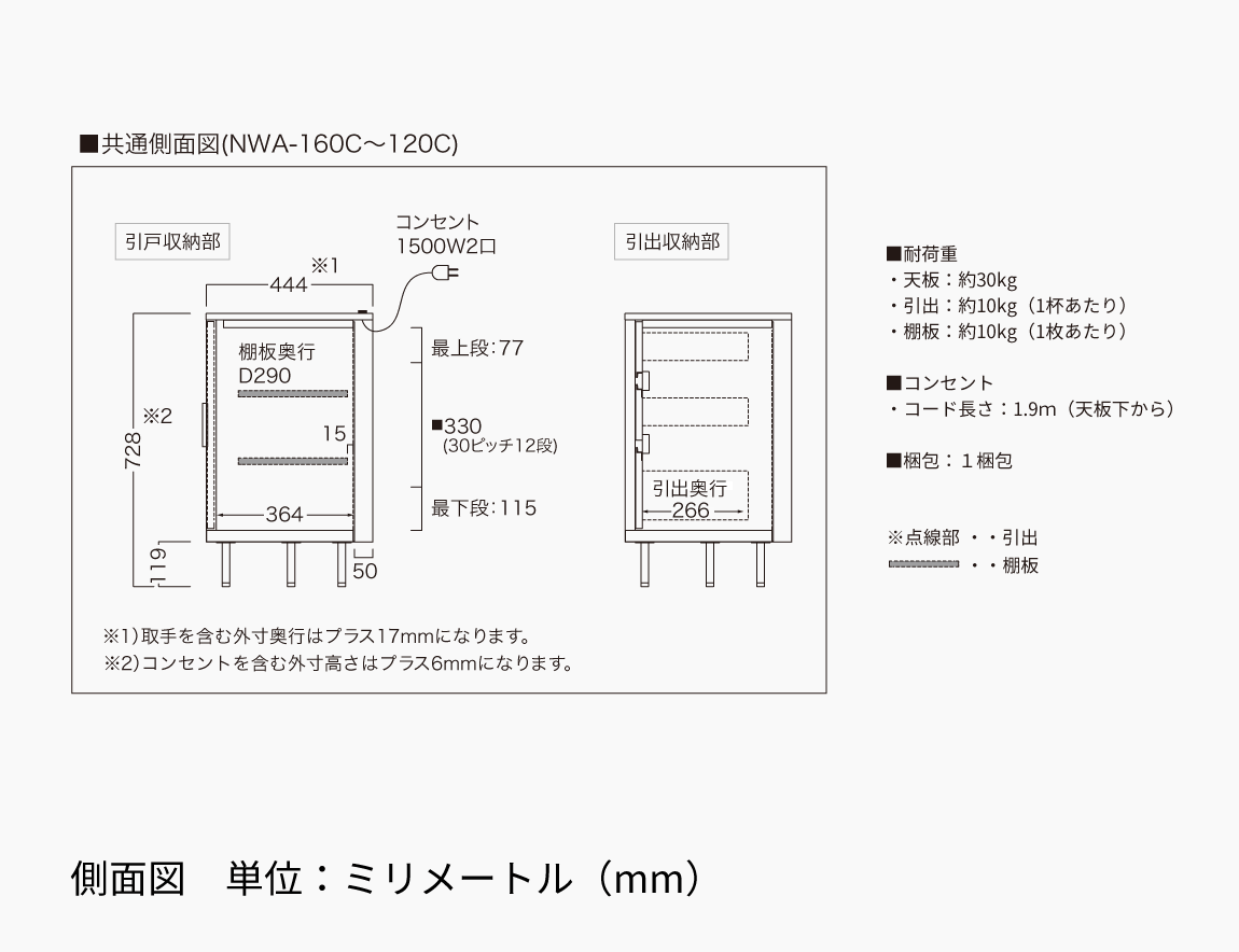 ※奥行と高さは共通です。