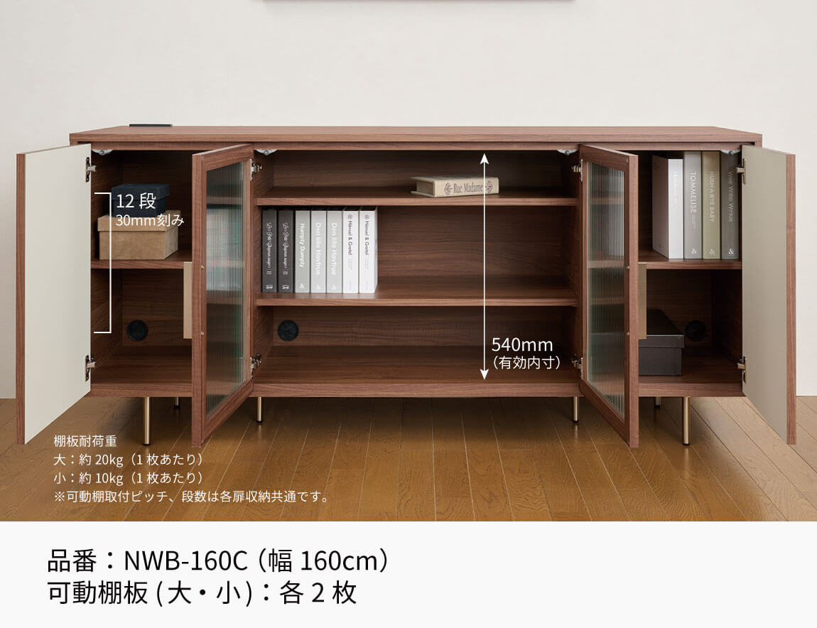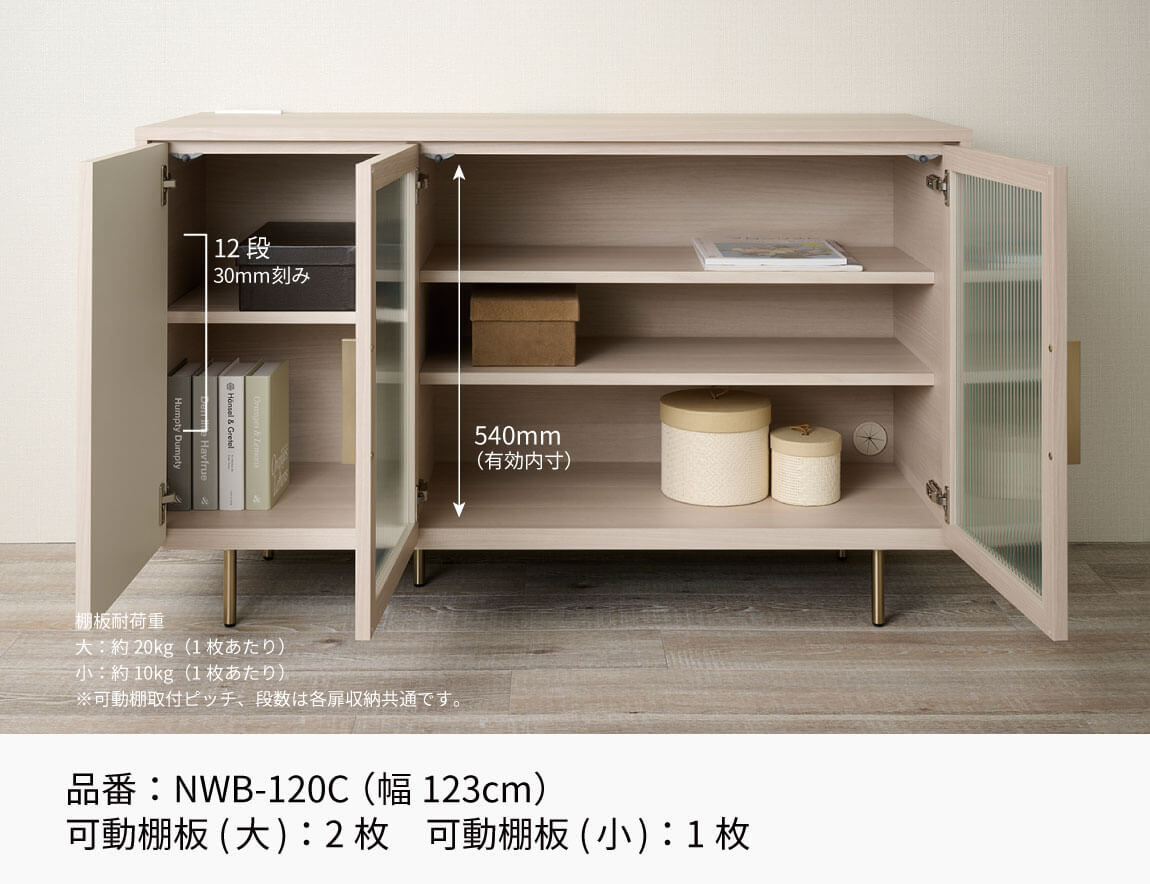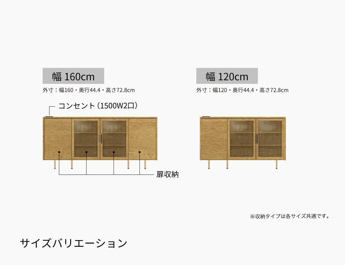 シンプルながらも丁寧に選ばれた色柄で、リビングはもちろんどんなお部屋にも馴染み、永く愛用できるサイドボードとしてお使いいただけます。