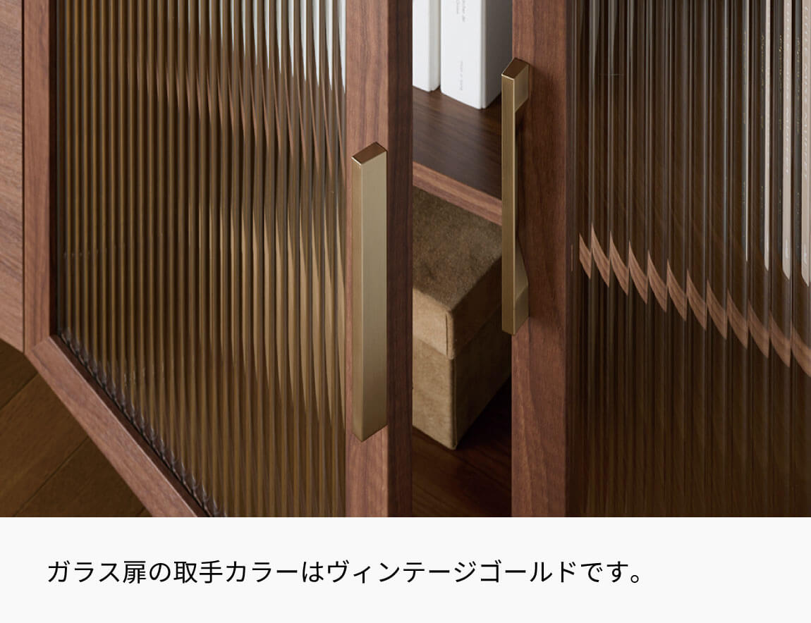 開き戸部分には、ナチュラルなデザインに馴染むモールガラスを採用。