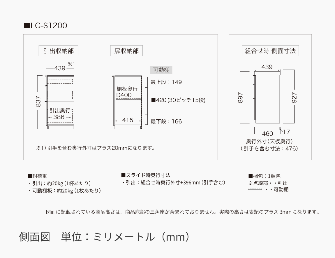 可動棚板:約20kg(1枚あたり)