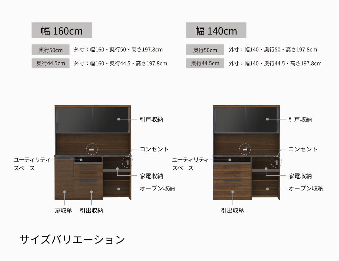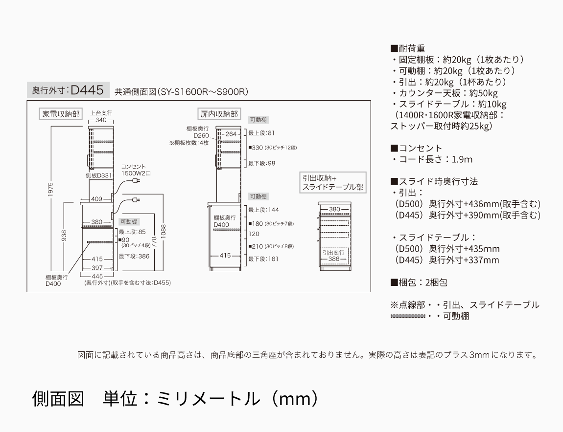 ※幅160、140cmの家電収納部スライドテーブルはストッパー取付時の耐荷重が約25kgとなります。