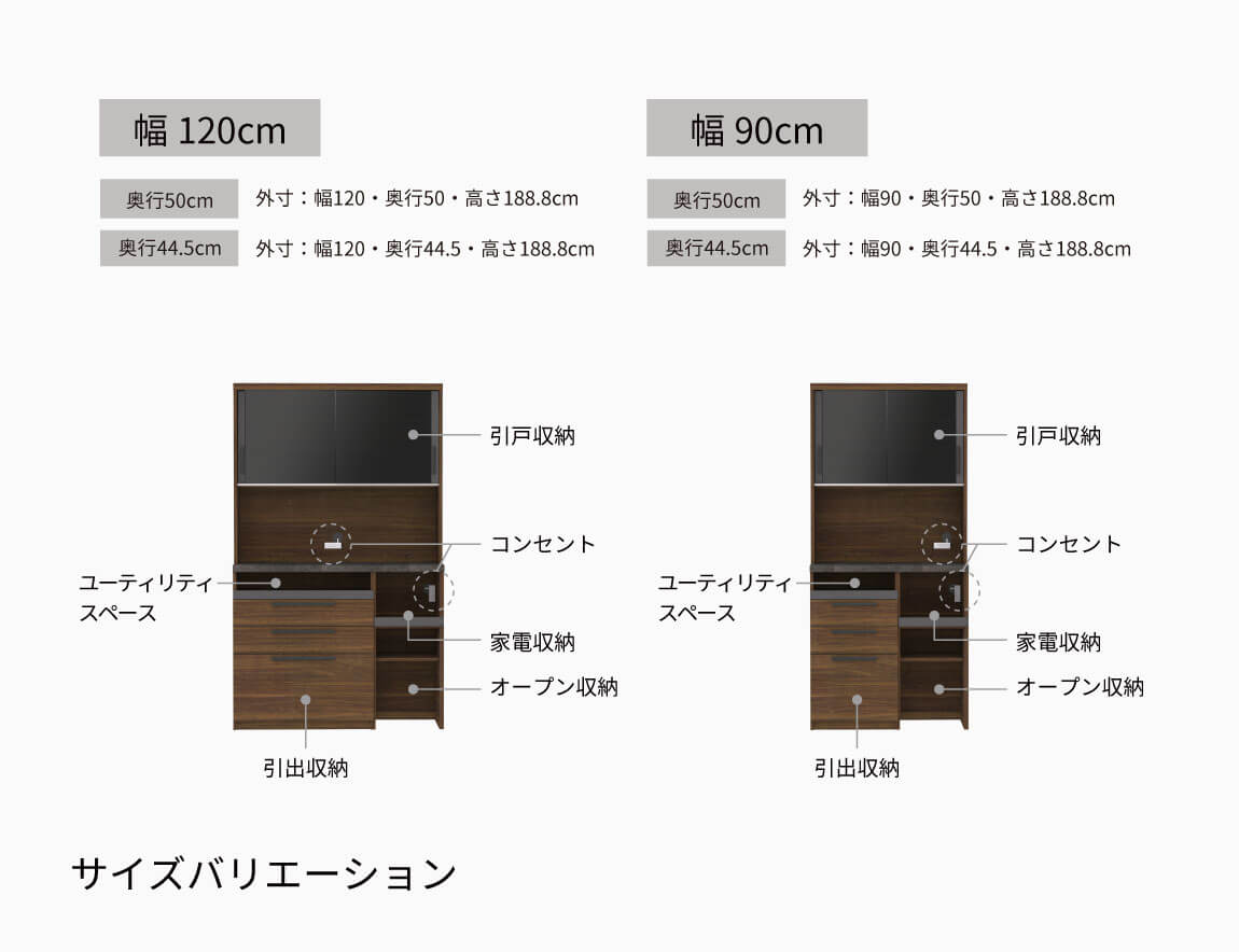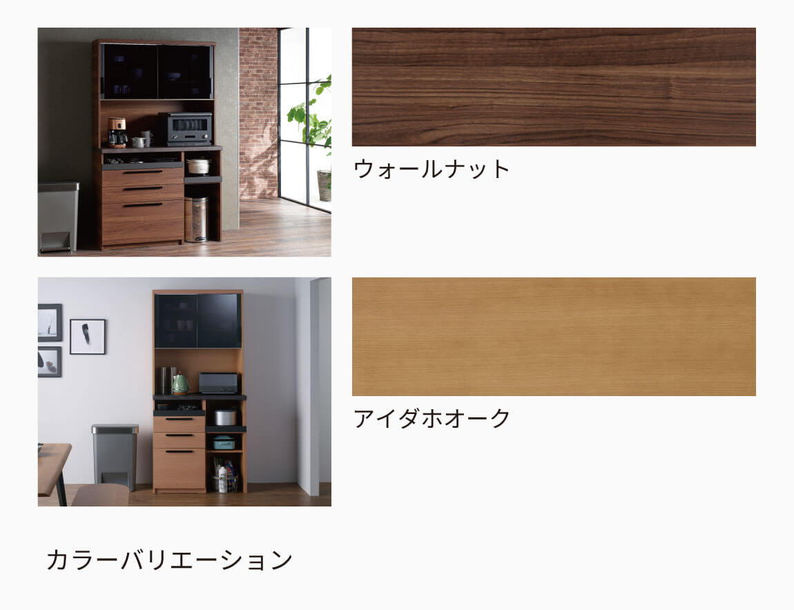 全色ともブラック色の取手やガラスがアクセントになり、ヴィンテージテイストの重厚感あるイメージを実現しています。