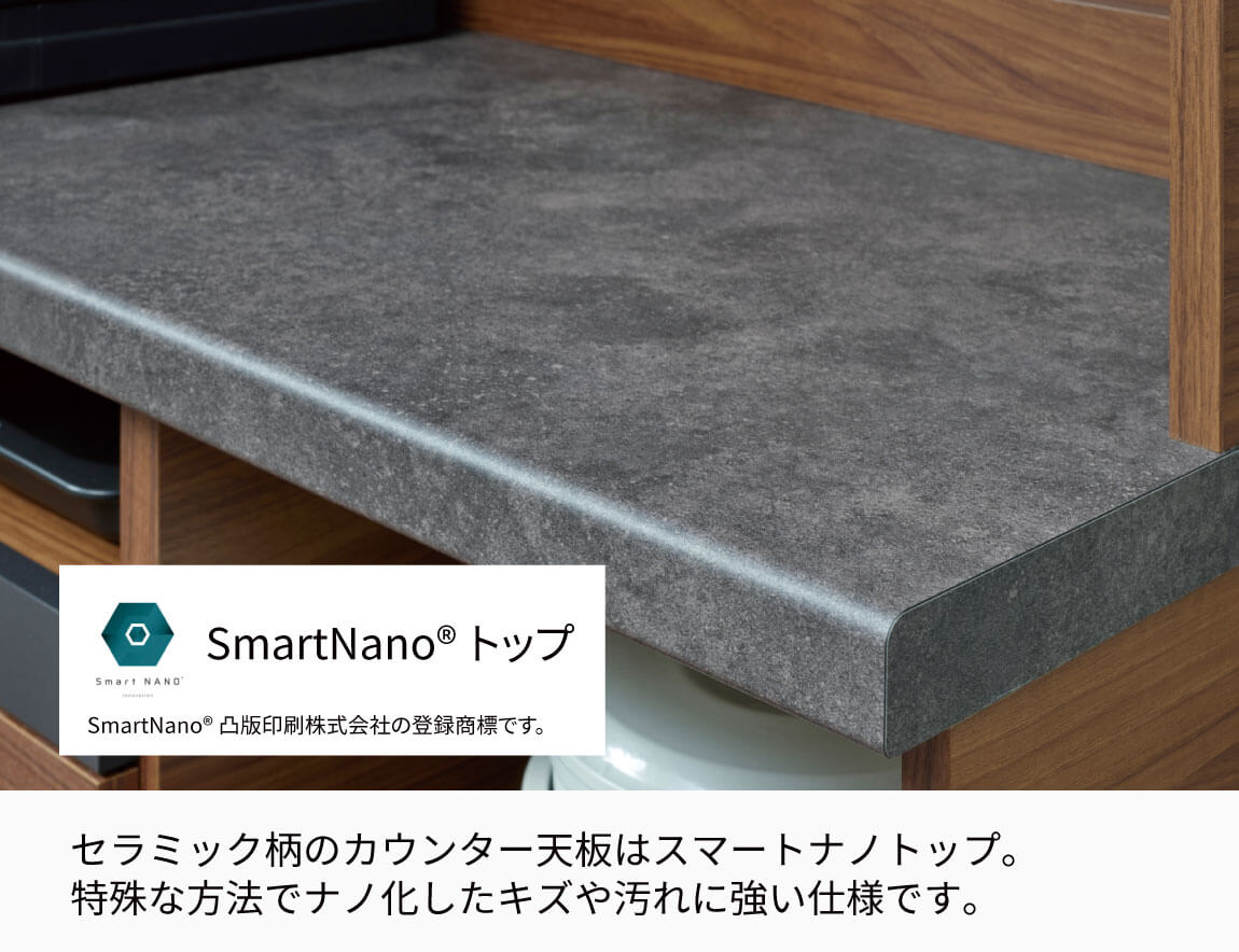 カウンター天板はナノレベルで強化されたコートが施されていますので、スリ傷に強い仕様になっています。